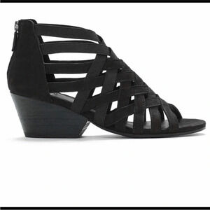 Eileen Fisher Black Oodle Tumbled Nubuck Leather Block Heel Cage Sandal