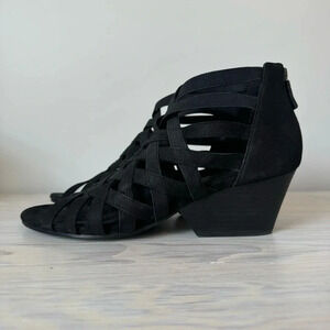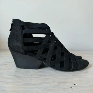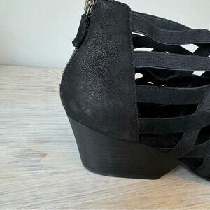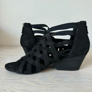 Eileen Fisher Black Oodle Tumbled Nubuck Leather Block Heel Cage Sandal Size 8.5