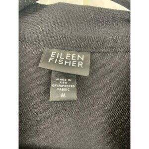 Eileen Fisher Black Open Front Cardigan Dress Medium 3/4 Sleeve Womens USA Made