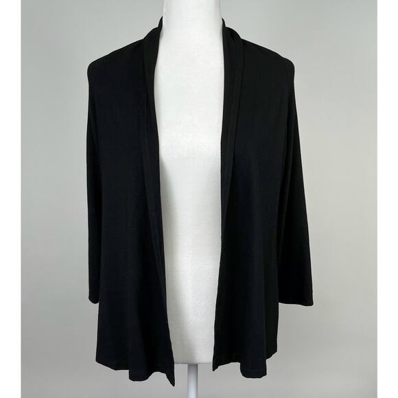 Eileen Fisher Black Open Front Cardigan Small Neutral Minimalist Layering Career