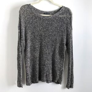 Eileen Fisher Black Open Weave Sweater M Slouchy Langenlook Layers Sheer