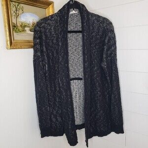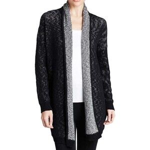 Eileen Fisher Black Organic Cotton Open Front Ribbed Cardigan Small