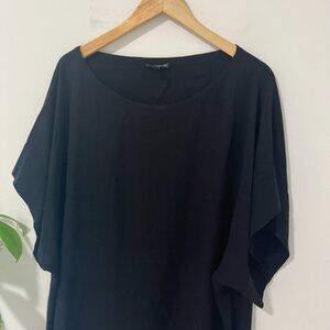 Eileen Fisher Black Oversized Short Sleeve Silk Blouse Size XL