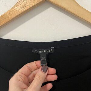 Eileen Fisher Black Oversized Short Sleeve Silk Blouse Size XL. Super soft silk material. Solid black. Boat neck. Large, oversized fit. Short Sleeve. Lagenlook style top.