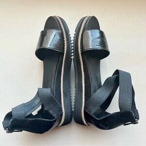 EILEEN FISHER Black Patent Leather with Elastic Criss Cross Ankle Strap Size 7.5. Some marks, but overall in good condition. Please consider bundling for the best deal. Thank you for shopping.