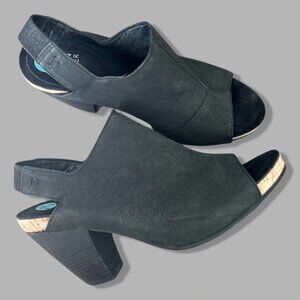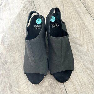 Eileen Fisher Black Pebbled Leather Open Toe Slingback Ankle Bootie