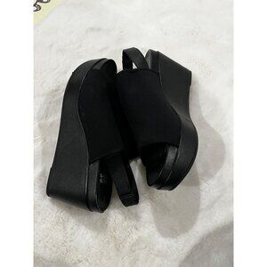 Eileen Fisher Black Peep Toe Slingback Platform Wedge Heels Size 8.5