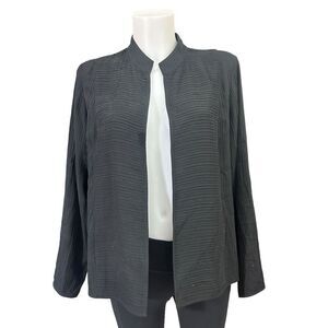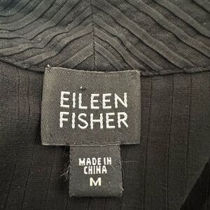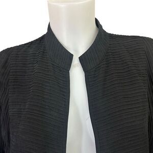 Eileen Fisher Black Pleated Silk Open Front Cardigan Lightweight w/ Pockets sz M
