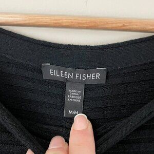 Eileen Fisher Black Rib Knit Wool Blend Tunic Sweater Size Medium