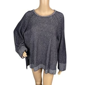 Eileen Fisher Black Ribbed Organic Cotton Chenille Raglan Sweater SZ XL