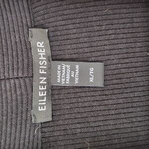 Eileen Fisher Black Ribbed Tencel Blend Stretch Open Front Cardigan Size XL