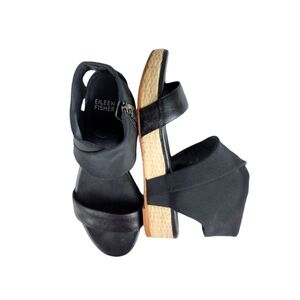 Eileen Fisher Black Side Zippered Espadrille Sandals
