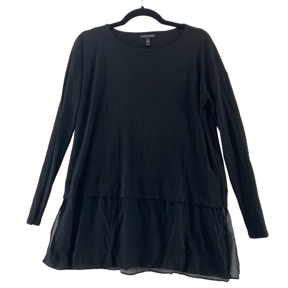 Eileen Fisher Black Silk Tiered Top Size XS