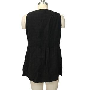 Eileen Fisher Black Sleeveless Faux Wrap Top Size S Linen Blend Textured Pockets