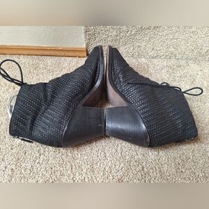 Eileen Fisher Black Slew Suede Lace Up Peep Toe Zip Back closure Bootie Womens Size 8 Heel height 3" measurements are approximate