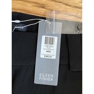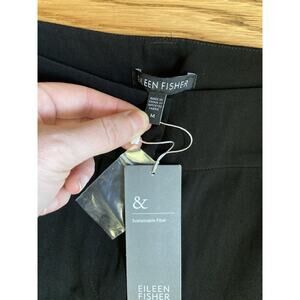 Eileen Fisher Black Slim Ankle Pant Recycled Poly Stretch Front Zip Medium