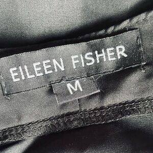 Eileen Fisher Black Split Neck Hidden Button Top Medium