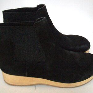 Eileen Fisher Black Suede Wood-Bottom Rubber Sole Chelsea Clog-Boots 9.5M $285