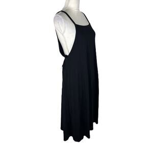 Eileen Fisher Black Tie Strappy Jersey Cami Dress Stretch Square Neck Size XS