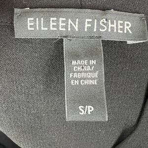 Eileen Fisher Black Top Georgette Crepe V-Neck Shirttail Hem Button Cuff S Small