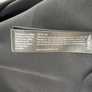 Eileen Fisher Black Top Georgette Crepe V-Neck Shirttail Hem Button Cuff Small