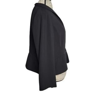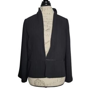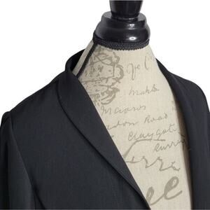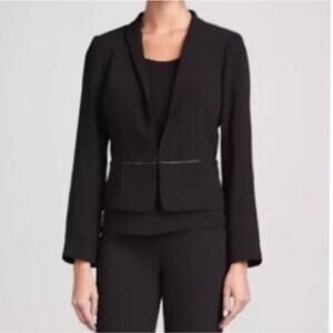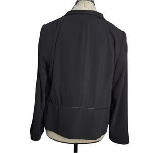 Eileen Fisher Black Tropical Suiting Eco Poly Leather Trim Blazer Petite Large