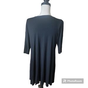 Black, short sleeved, organic cotton tunic with a low cut round neckline. In excellent pre-owned condition. Size M.