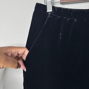 Eileen Fisher Black Velvet Pull-On Pants XS Silk Blend Tapered Ankle Lounge