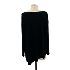 Eileen Fisher Black Viscose Jersey Asymmetric Hem Tunic Top Size Large