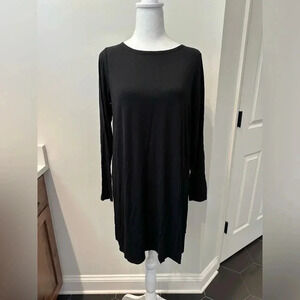 Eileen Fisher Black Viscose Jersey Scoopneck Long Sleeve Swing Tunic Dress Sz SP