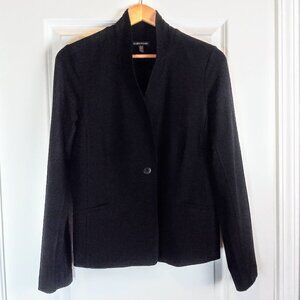 Classic black one-button blazer from Eileen Fisher in solid black.