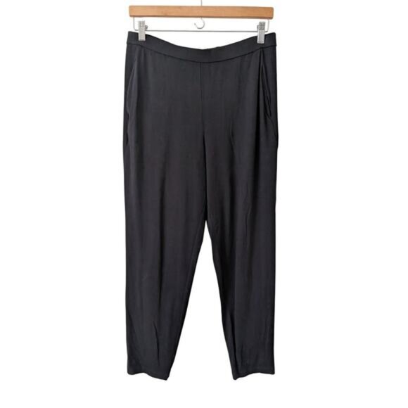 Eileen Fisher Black Viscose Tapered Leg Pants Medium Pull On Sustainable Comfort