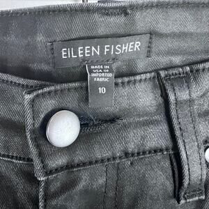 Eileen Fisher Black Waxed Coated Organic Cotton Skinny Jeans Pants Size 10