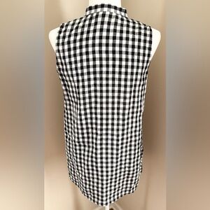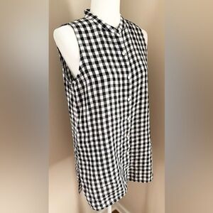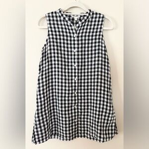 Eileen Fisher Black White Gingham Linen Button Up Sleeveless Tunic Top