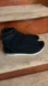 Eileen Fisher open-toe knit sandals, size US 8. These shoes feature a black, textured knit upper with a peep-toe design and a high-cut ankle. The shoes are set on a white platform sole with black accents. The insoles are black with the "EILEEN FISHER" brand name in white. In great condition.