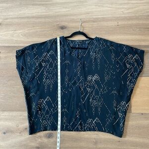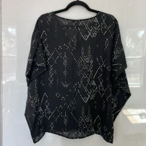 Eileen Fisher Black & White Marrakesh Printed Silk Tencel V-neck Blouse Size S