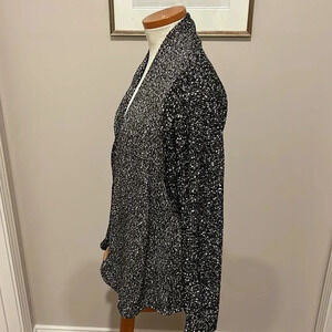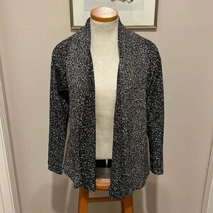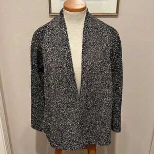 Eileen Fisher - Black White - Micro Tweed Cotton Open Front Cardigan - Size SP
