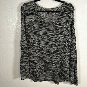 Eileen Fisher Black & White Open Weave Sweater Scoop Neck Size Medium