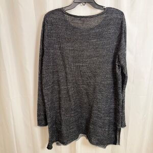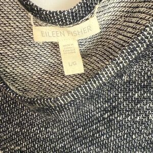 Eileen Fisher Black White Organic Cotton Linen Knit Pullover Sweater L Oversized