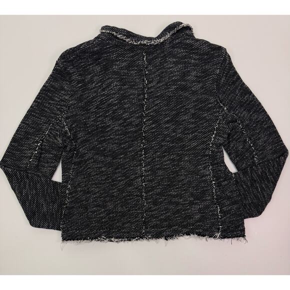 Eileen Fisher Black White Textured Fringe Tweed Blazer Cardigan Size S Petite