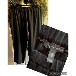 Super Cute Preowned Eileen Fisher Black Wide Leg Elastic Waist Pull on 100% Silk Pants Size Medium