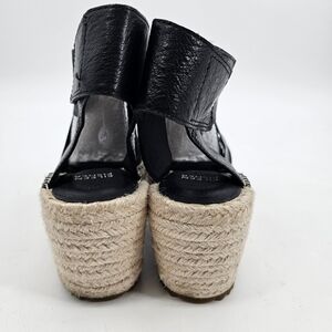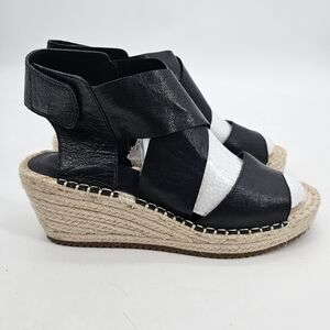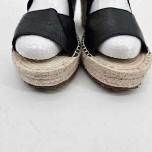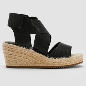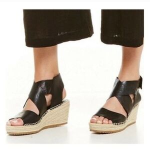 Eileen Fisher Black Willow Tumbled Leather Wedge Espadrille Womens Size 9
