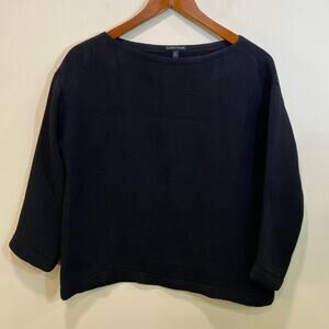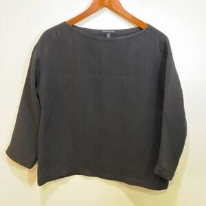 Eileen Fisher Black XS/TP Textured Minimalist Silk blend Top 3/4 Oversized