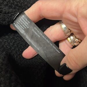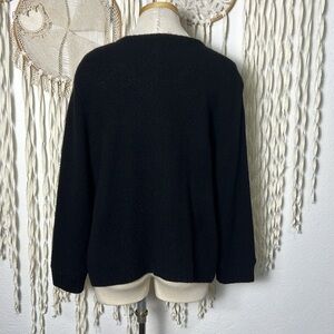 Eileen Fisher Black Zip Front Wool Yak and Leather Trim Sweater Jacket Large