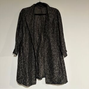 Elegant black and gray duster by Eileen Fisher. Silk blend Features a subtle pattern. Ideal for versatile styling. Size L