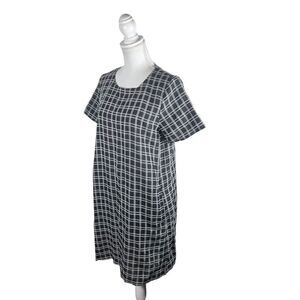 Eileen Fisher Black and White Linen Blend Shift Dress