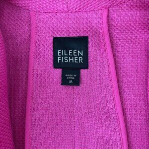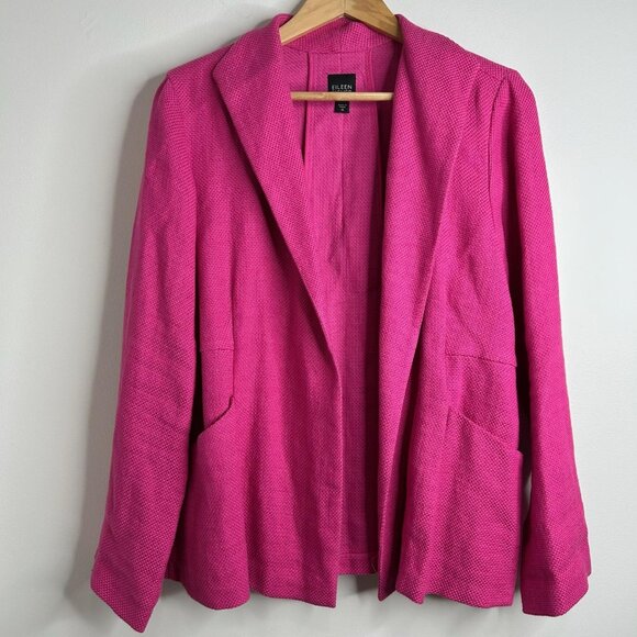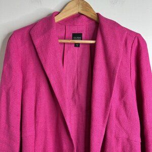 Eileen Fisher Blazer Sz M Pink Linen Blend Open Front Textured Pockets Preppy