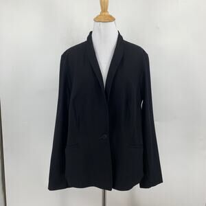 Eileen Fisher Blazer Womens 1X Plus Black Stretch One Button Pockets Jacket
