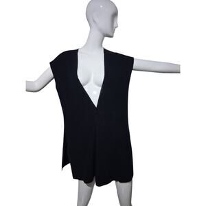 Eileen Fisher Blk Organic Linen & Cotton Womens size Petite Medium Open Cardigan