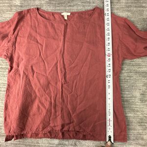 Eileen Fisher Blouse Pink Organic Linen Lagenlook Boatneck 3/4 Sleeve Top Size M